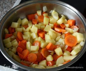 Картофель нарезать маленькими кубиками, смешать с овощами, готовить минут 5-7. Знаете, как звучит слово картофель в Аргентине? Рapa «папа», как и обращение к родителю. По-моему, это замечательно!