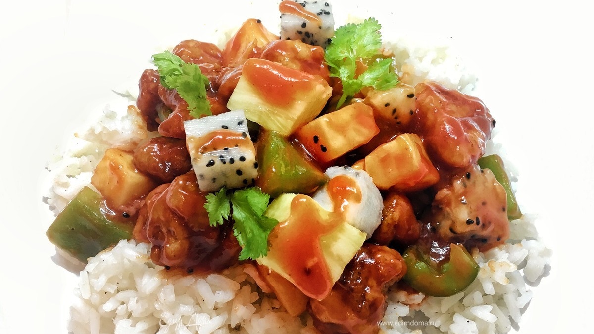 Соберите на тарелку композицию из душистого риса ТМ «Националь» и красочного Гулу жоу. Украсьте оставленными кубиками фруктов и парочкой листиков кинзы для дополнительного цвета на тарелке. Блюдо лучше всего есть палочками, чтобы прочувствовать атмосферу китайского колорита. Вкус настолько яркий и запоминающийся, что вы мысленно перенесетесь в Китай. Хрустящее снаружи, но сочное внутри мясо, сладкий тягучий соус, ароматный рис и свежие фрукты… Это очень вкусно! Приятного аппетита!