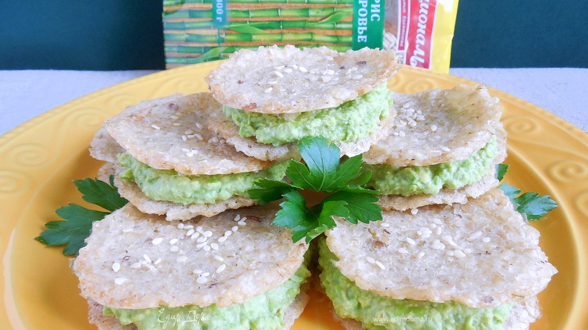 Рисовые сэндвич-крекеры с зеленым хумусом