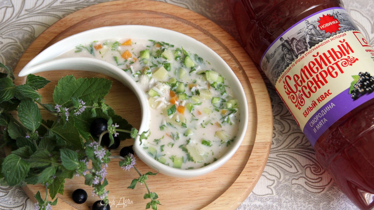 Добавить белый квас «Семейный секрет. Смородина-мята». Приятного аппетита!