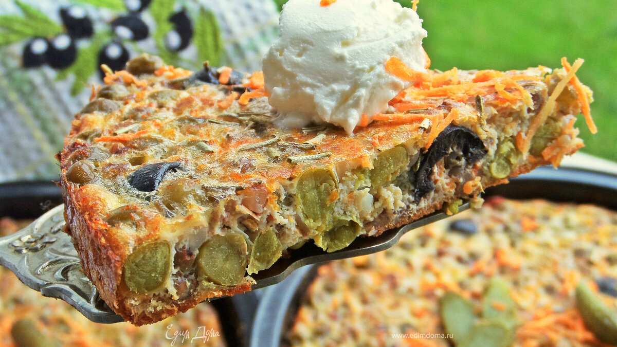 Приготовим пикантный омлет в духовке. Можно запечь в переносной электродуховке на даче. Если такового нет, готовим в сковороде под крышкой на газу. Получился сытный завтрак-ужин! Отлично держит форму и нарезатся.