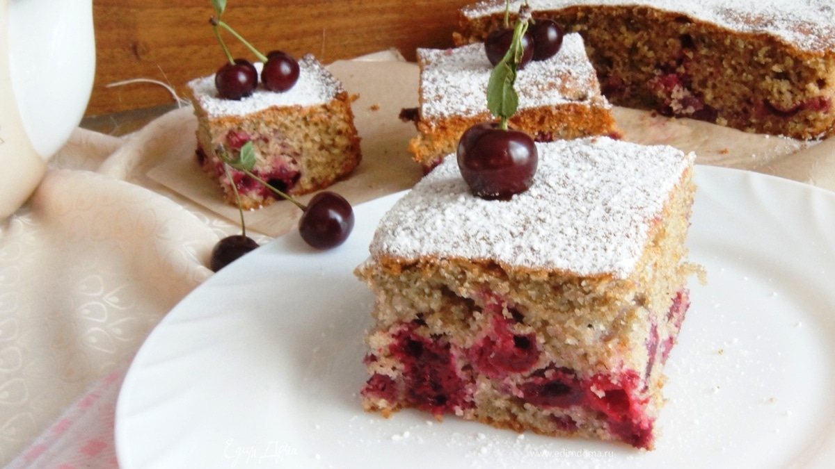 Когда начинается сезон ягод, стараюсь печь вот такой полезный пирог на цельнозерновой муке. Делала его и с малиной, но с вишней понравился больше. Ведь кислинка вишни придает особый шарм этому пирогу.