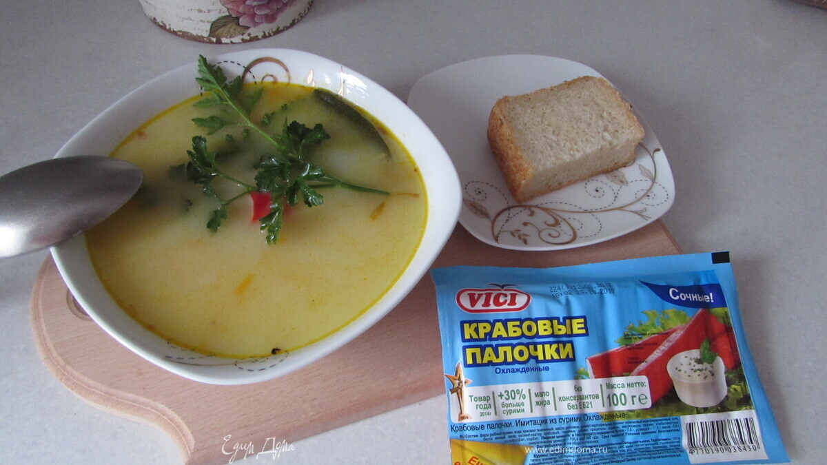 Суп с вермишелью и крабовыми палочками