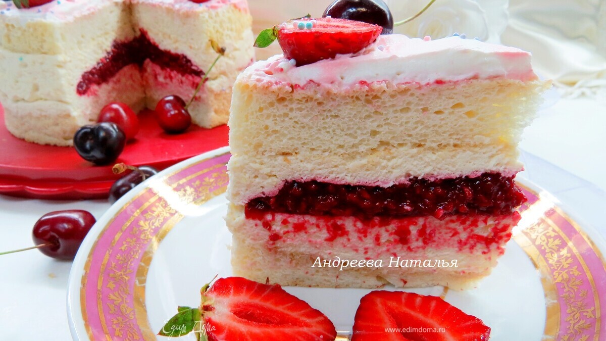 Быстрый воздушный и очень вкусный летний тортик на знаменитом ангельском бисквите, в основе которого лежит много взбитых белков.