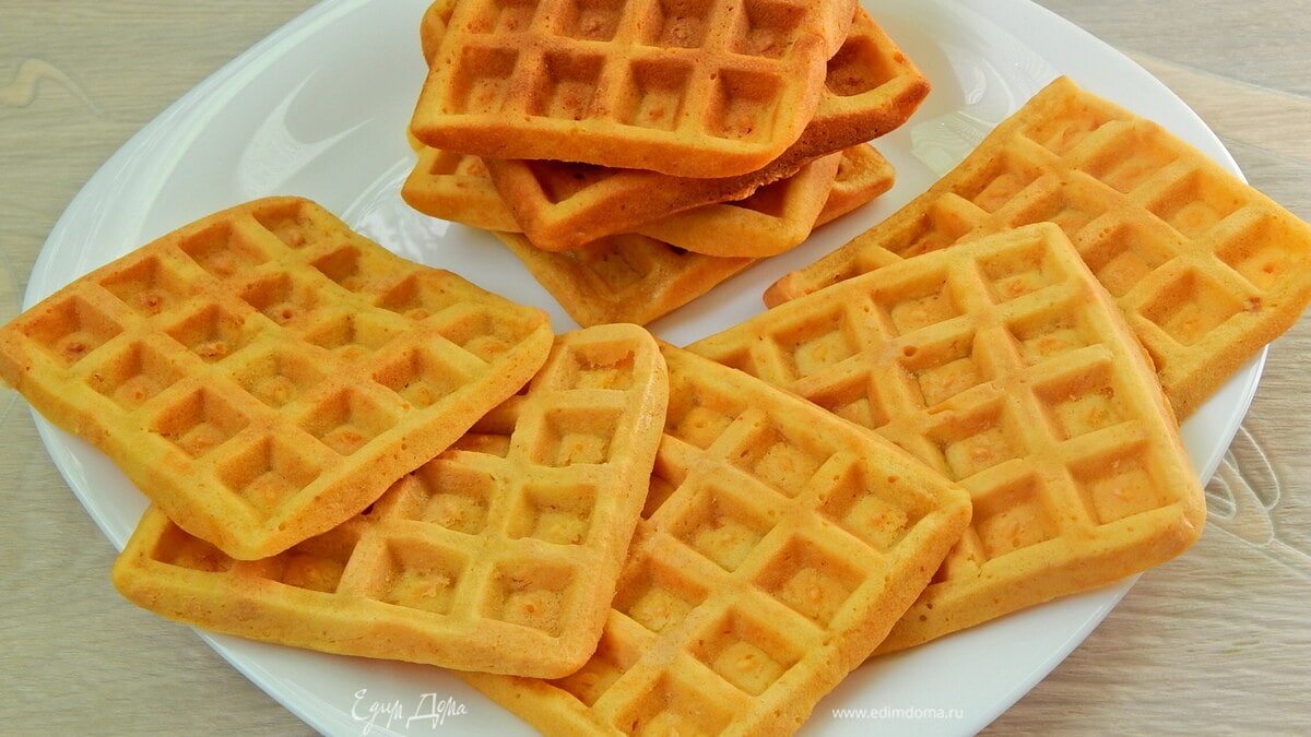 Вафли со вкусом абрикоса можно подавать с любимым вареньем, джемом или сгущенным молоком.