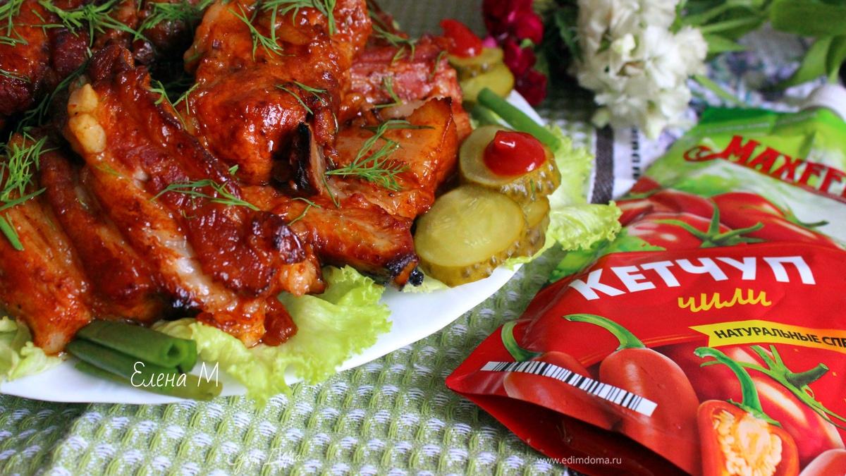 Я считаю, что это лучший рецепт запеченных ребрышек в кетчупе, потому что блюдо получается вкусным даже у начинающих кулинаров. Мягкими, вкусными и ароматными ребрышки будут гарантированно! Если хотите менее острое блюдо, то смешайте пополам кетчуп чили и томатный кетчуп «МахеевЪ».