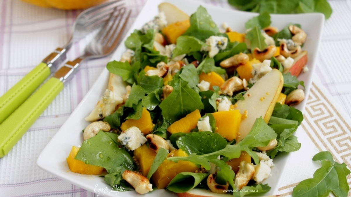 Выложить на блюдо руколу, кусочки теплой тыквы. - Шаг 4