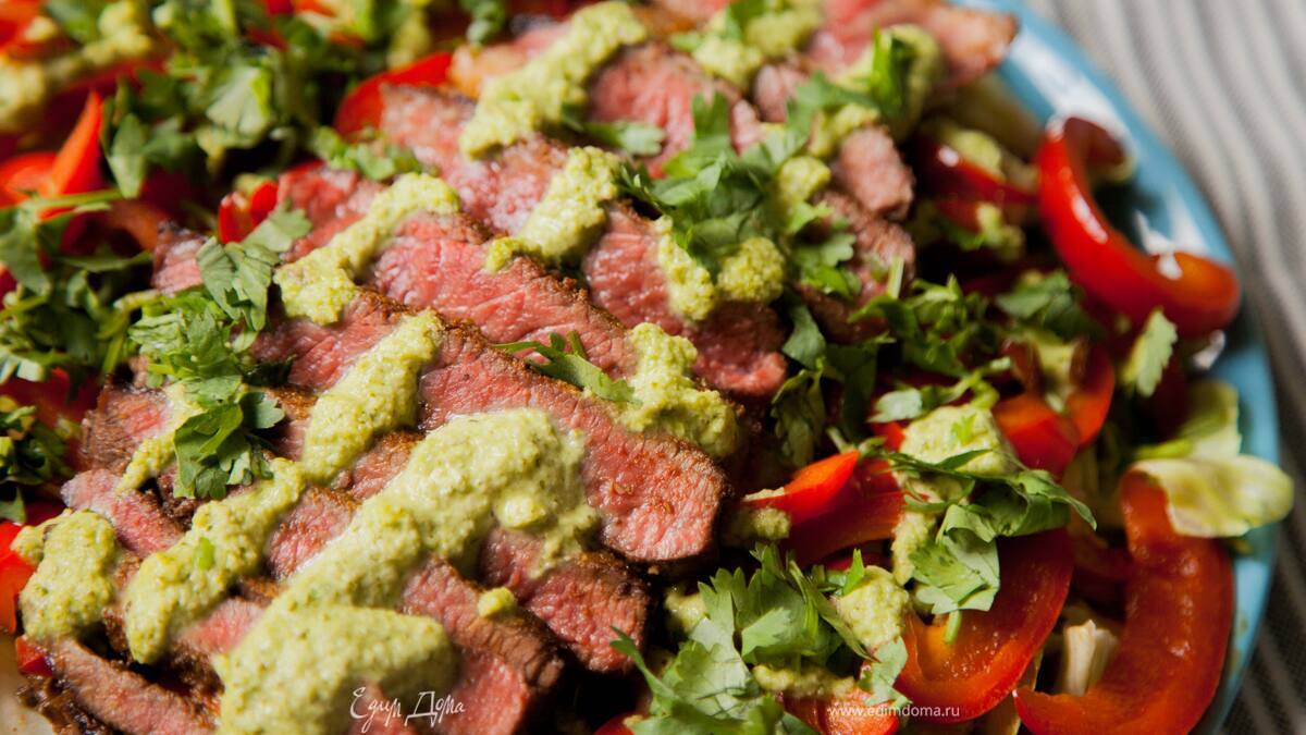 Фахитос — блюдо мексиканской кухни, жареное на гриле и нарезанное полосками мясо с овощами. В качестве мясного ингредиента чаще всего используется говядина. К мясу часто добавляются сметана, гуакамоле, сальса, пико-де-гальо, сыр и томаты. Этот салат является интерпретацией блюда.