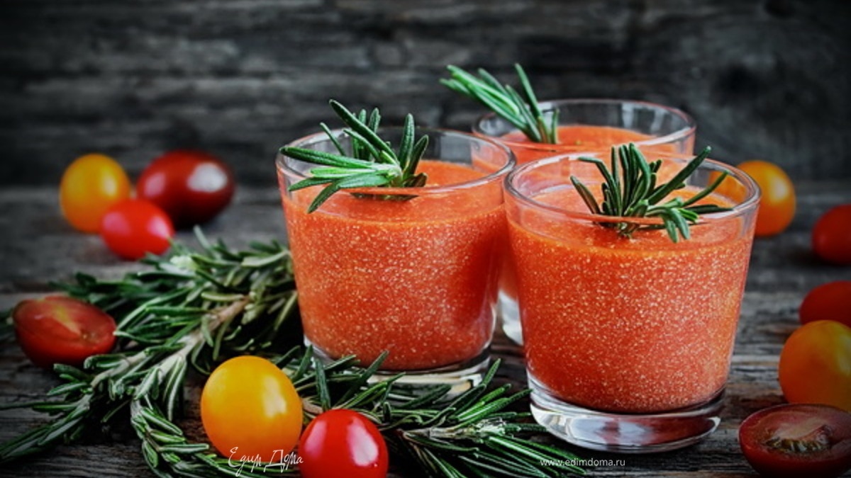 В чашу блендера влить домашний томатный сок, добавить обезжиренный творог, розмарин, кайенский перец и молотую паприку, посолить и взбить. - Шаг 4