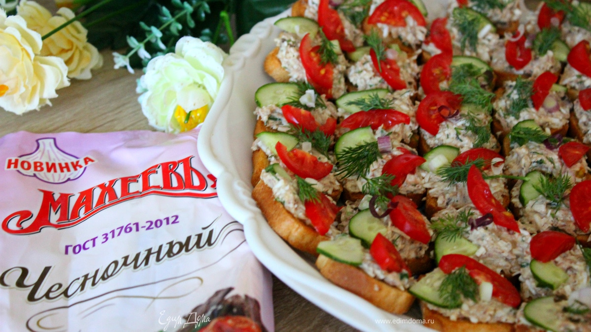 Я считаю, что это лучший рецепт канапе с консервированным тунцом, потому что это идеальное блюдо для праздничного стола! Чесночный майонез «МахеевЪ»