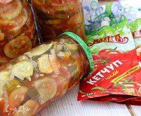 Я считаю, что это лучший рецепт огуречного салата с кетчупом, потому что вкусный, в меру острый, хорошо хранится, довольно оригинально смотрится на зимнем столе.