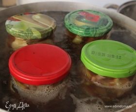 Банки вынуть из воды, закрутить крышки. Банки перевернуть. Дать остыть при комнатной температуре.