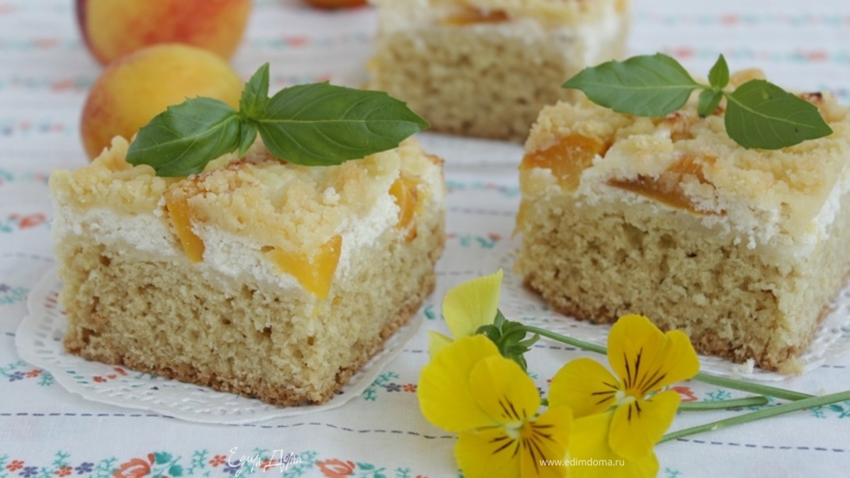 Пирог с персиками и творогом