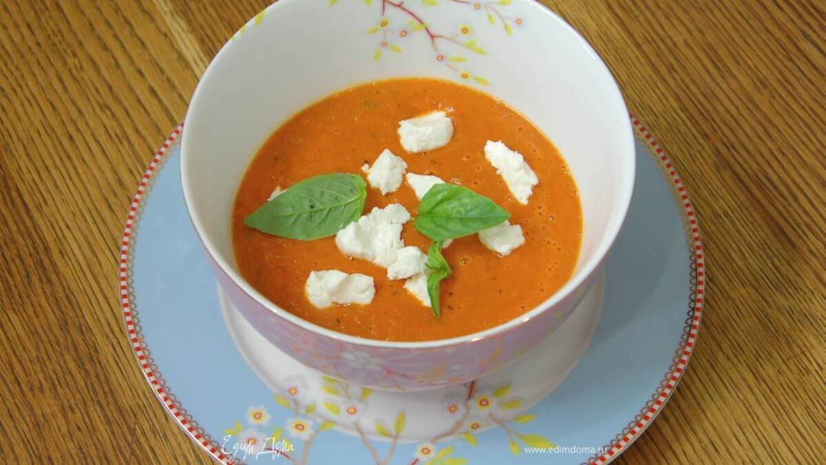Суп из запеченных помидоров с козьим сыром и базиликом
