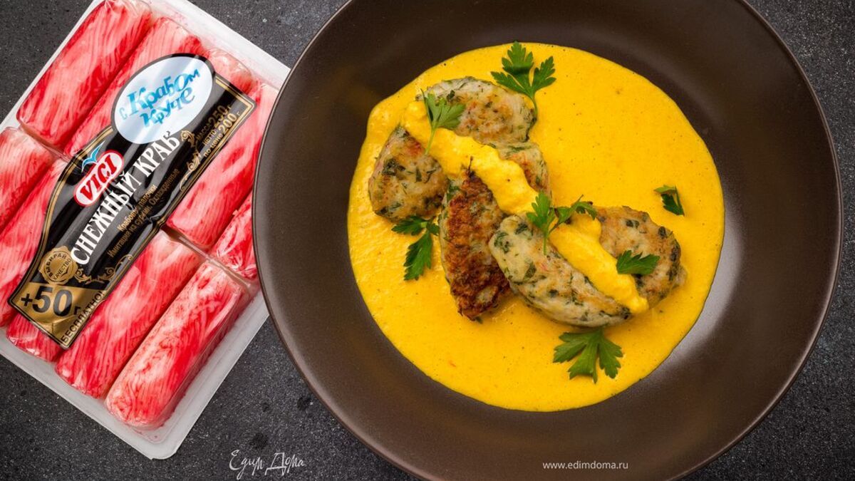 Биточки с крабовыми палочками и соусом
