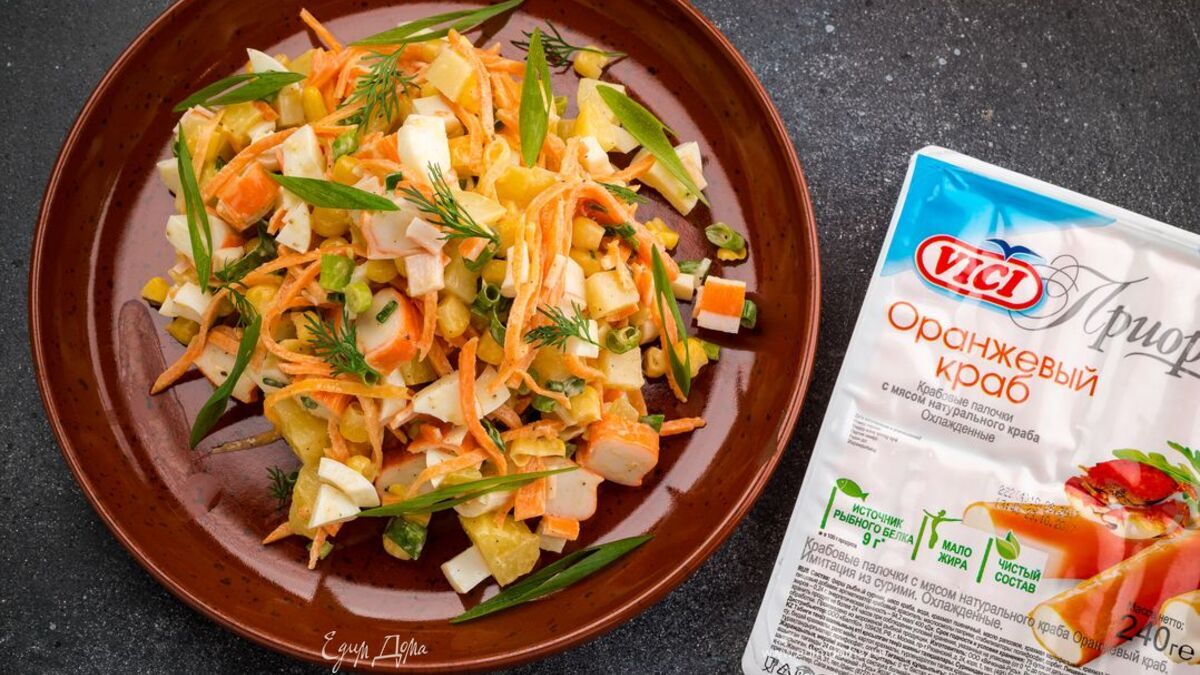 Пикантный салат с крабовыми палочками