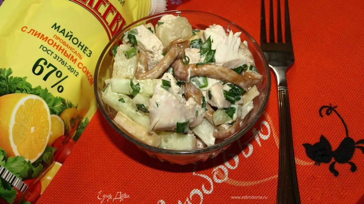 Салат «шанхай» c курицей, сыром и маринованными опятами