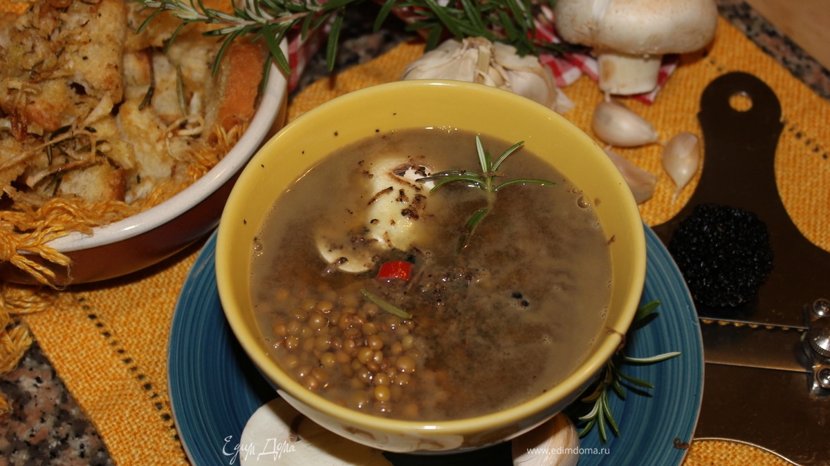 Итальянский суп из чечевицы с черным трюфелем