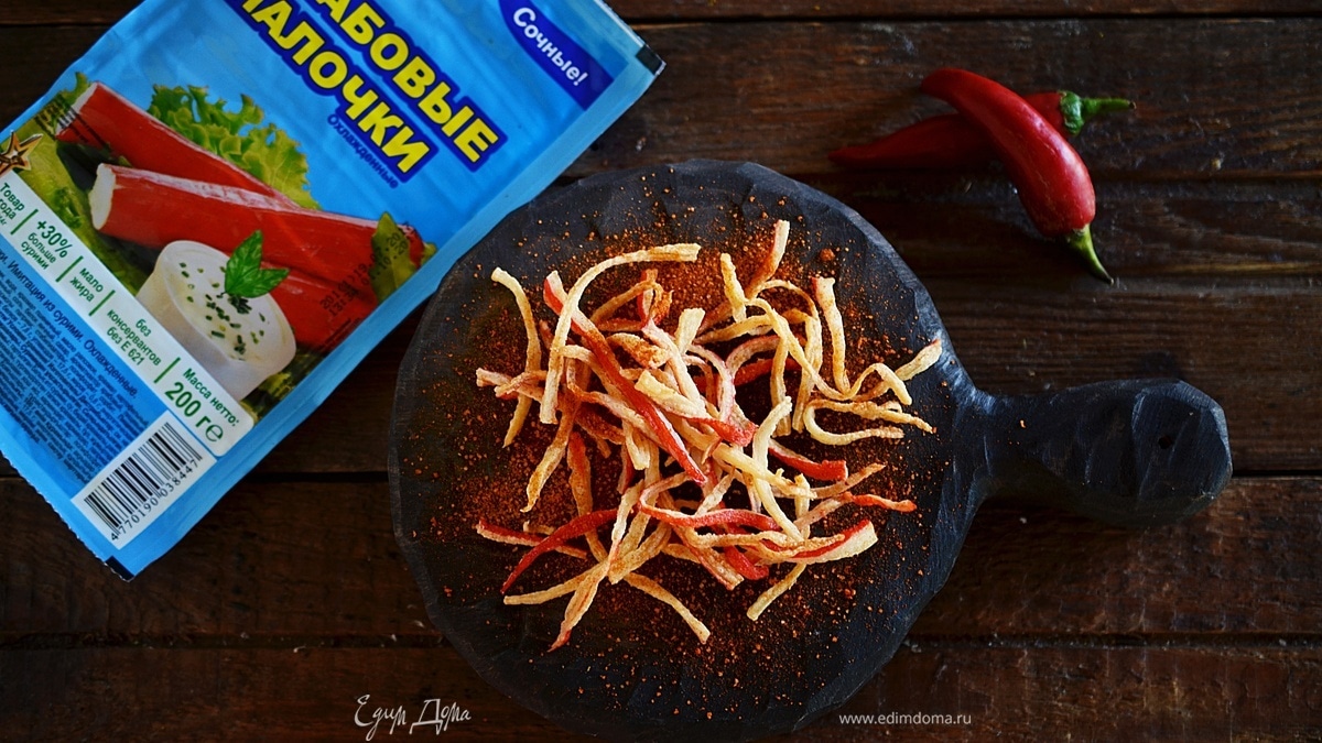 Крабовые палочки нарежьте тонкими полосками. Для этого рецепта я взяла крабовые палочки ТМ «Vici», они очень сочные и обладаю высокими вкусовыми качествами. - Шаг 2