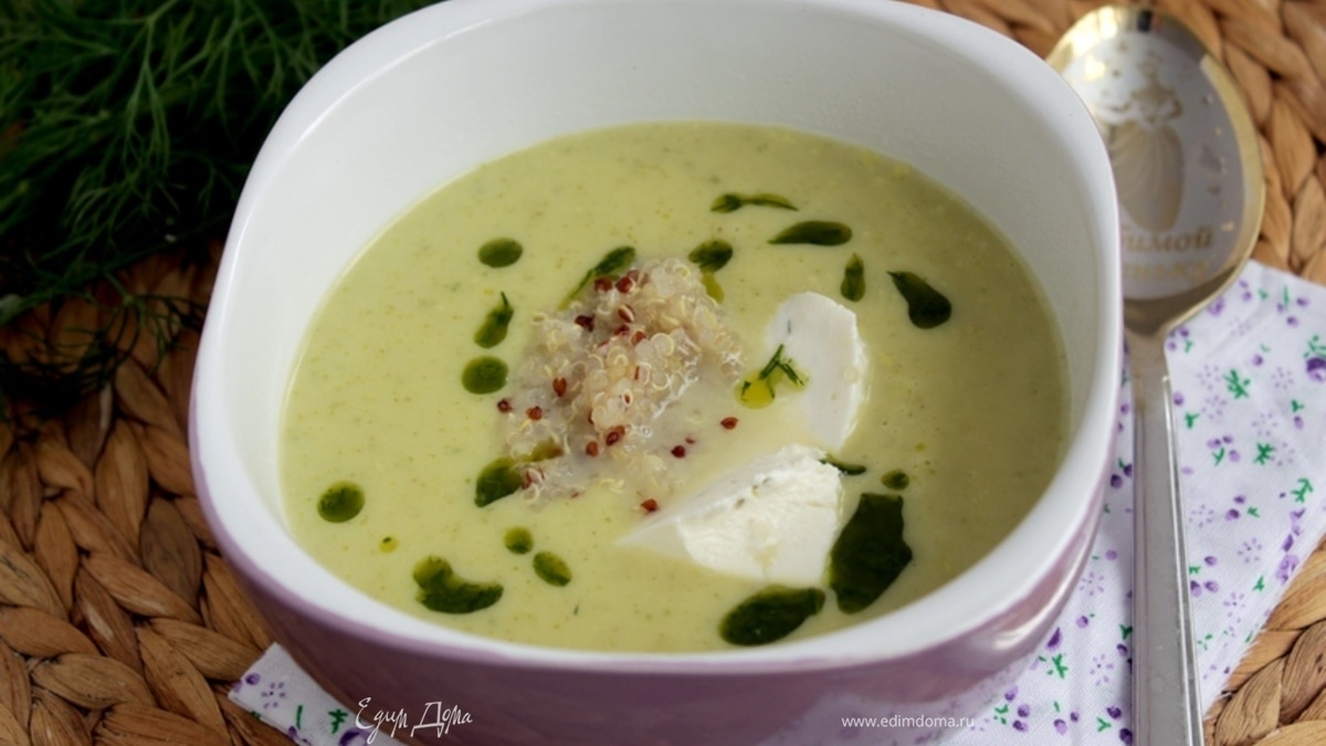 Крем-суп из цукини с рикоттой, киноа и укропом