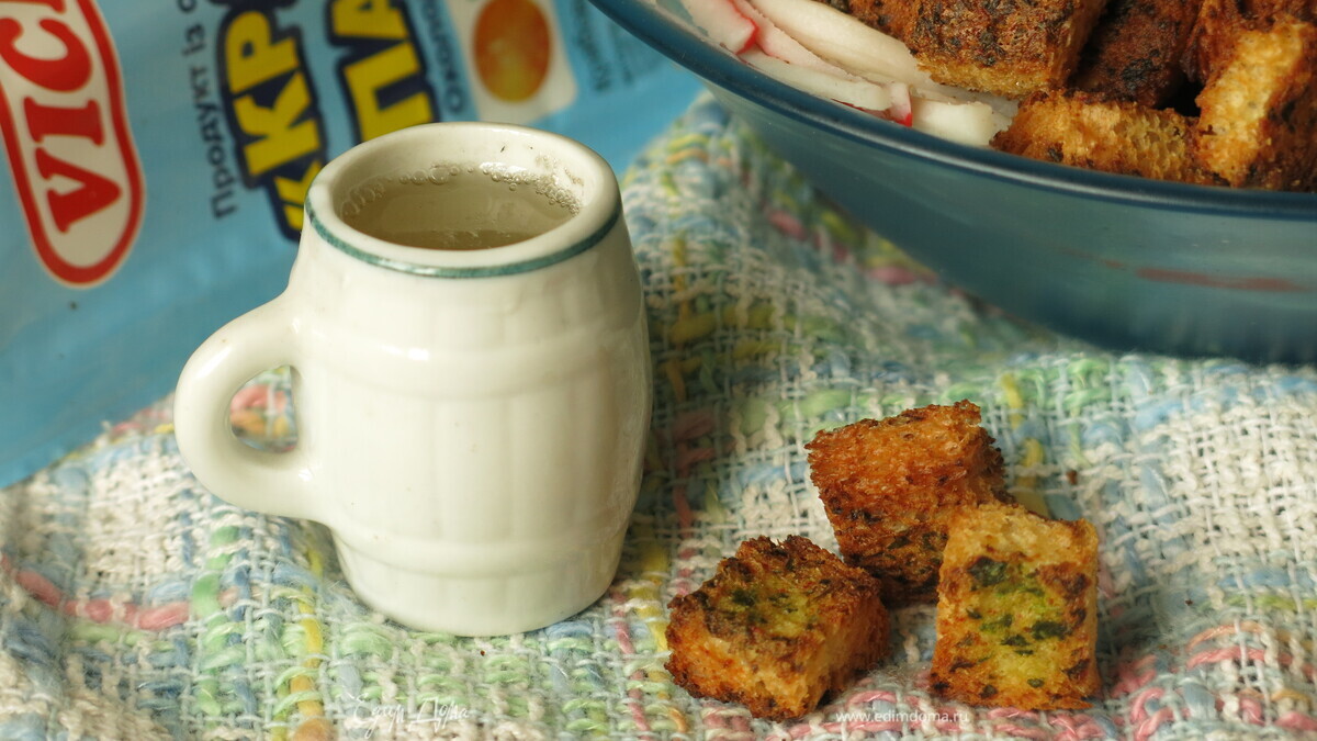 Крабовые сухарики — простая закуска, готовится быстро, съедается так же быстро. Хлеб пропитывается намазкой из крабовых палочек, нарезается и просушивается в духовке. Приятного!
