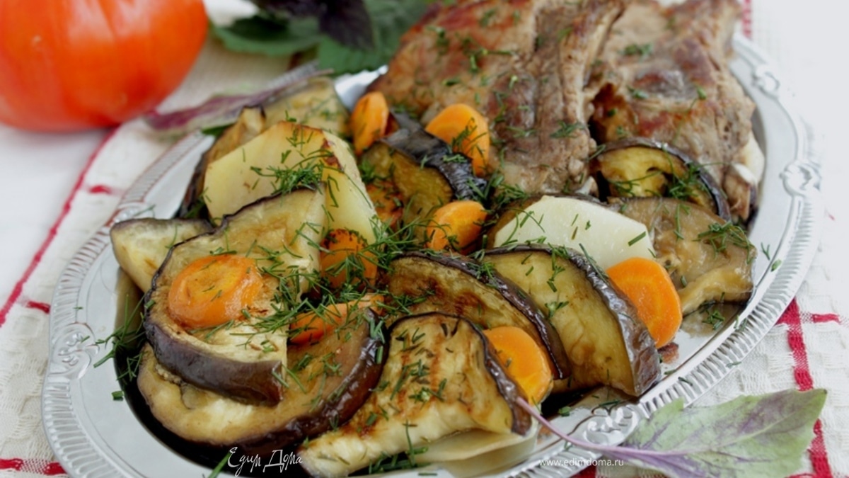 Очистите овощи и нарежьте крупными ломтиками, посолить, поперчить, посыпать тимьяном, влить 3 ст. л. оливкового масла. Перемешайте, выложите к мясу на противень. Разогрейте духовку до 220°С, влейте пиво, накройте фольгой и поставить в духовку на 1 час. Затем готовьте еще 10 минут без фольги.
