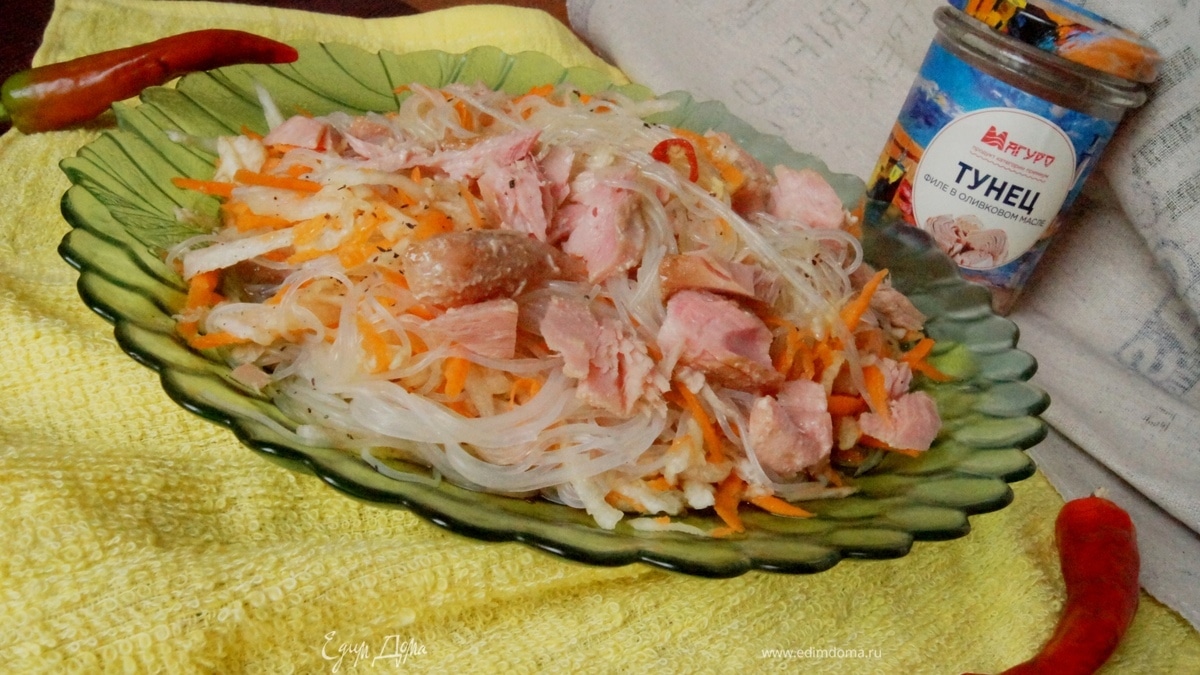 Фунчоза отлично с тунцом сочетается! 🍜🍤🙋