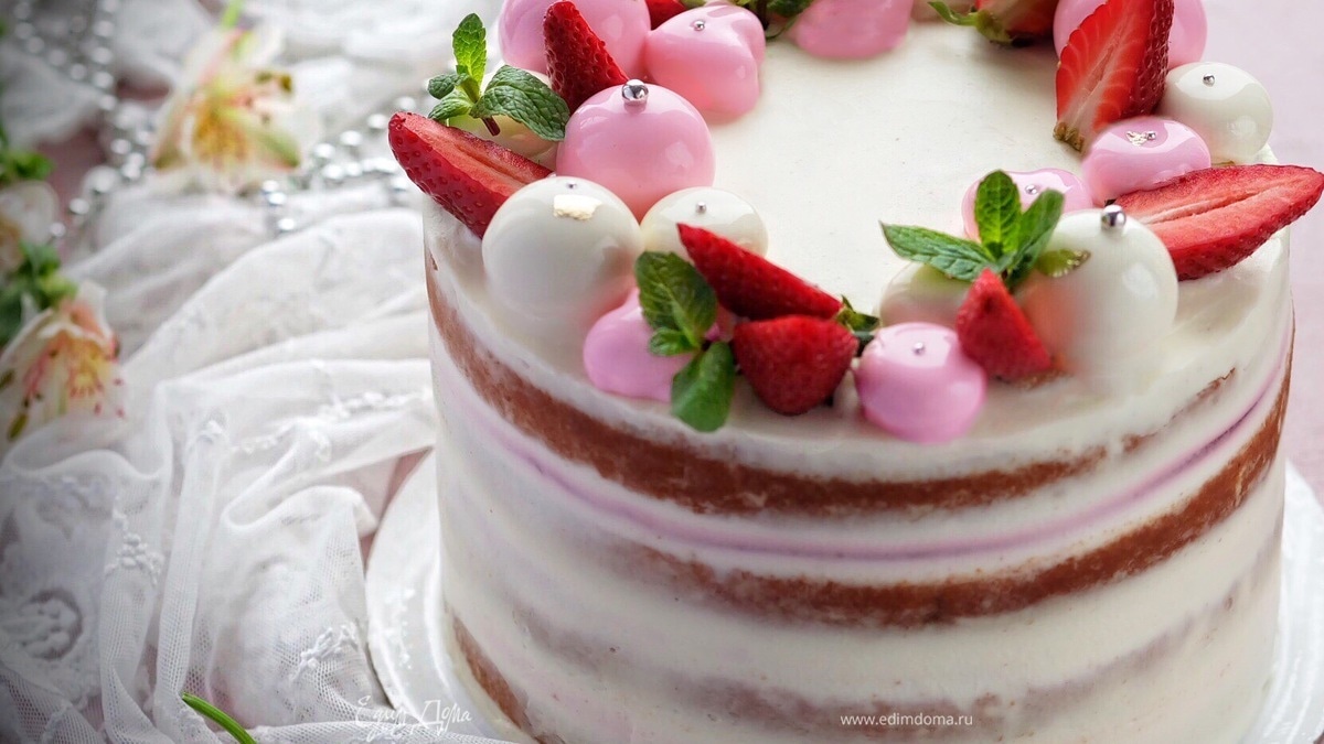 День 3-й Украшение торта Здесь никаких рамок — только ваше творчество и душевный настрой. Мне захотелось украсить торт муссовыми фигурками в зеркальной глазури, свежей клубникой и листиками мяты. Для более простого (но не менее эффектного) декора можно оставить небольшое количество крема и украсить торт им. Живые цветы будут прекрасны. Ягоды. Все, что захотите!