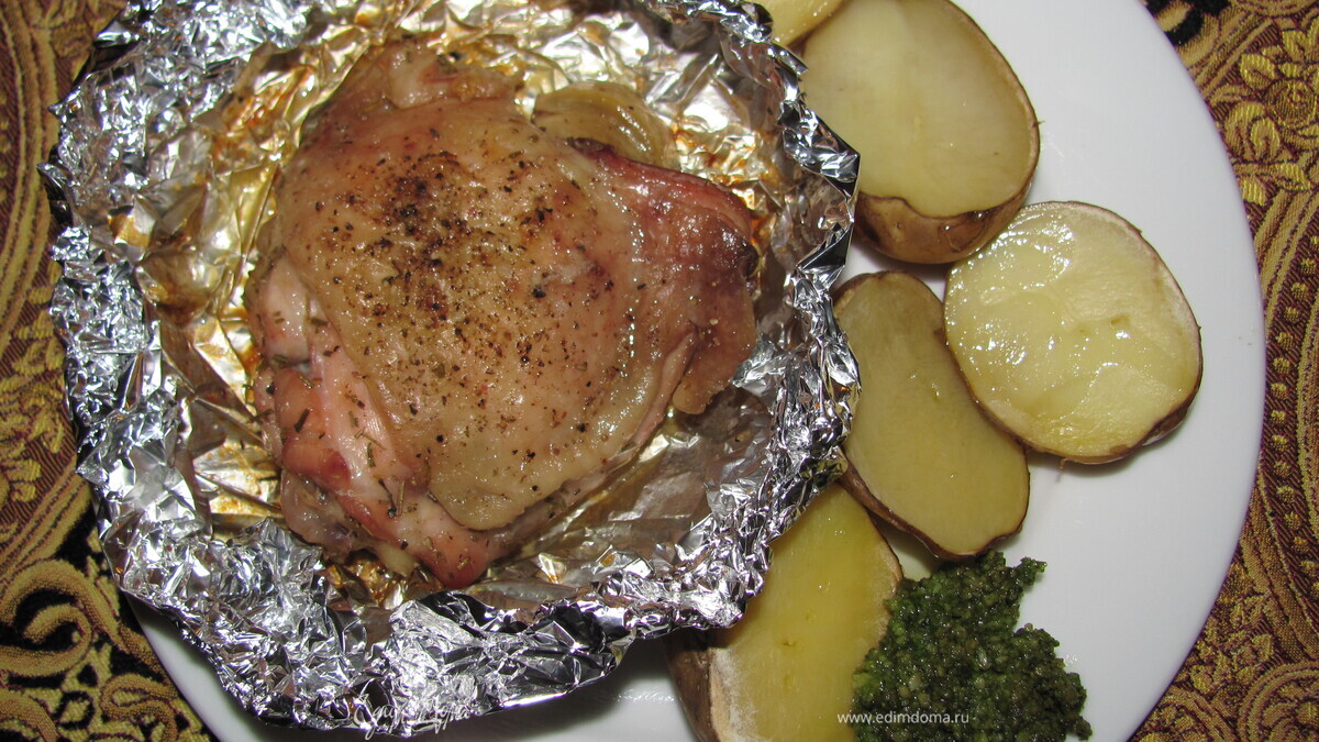 - Шаг 1Куриные бедрышки промыть и обсушить. В миске соединить уксус, розмарин,лавровый лист,соль и перец. Оставить промариноваться. Разогреть духовку. Спустя 20-30 мин., каждое куриное бедрышко выложить на фольгу и добавить к нему зубчик чеснока (предварительно его раздавив). Налить немного уксуса в котором бедрышки мариновались (примерно 2-3 ст.л.) и плотно завернуть фольгу. Поставить в духовку. Через 25-30 мин. фольгу развернуть и зарумянить бедрышки. Подавать с гарниром.
