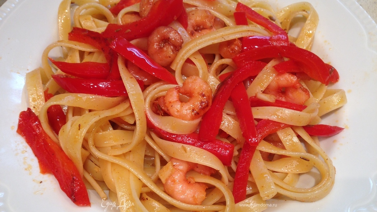 Феттуччине с пряными креветками