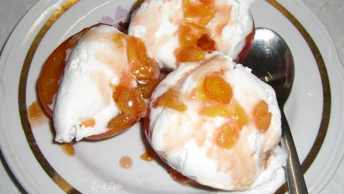 - Шаг 1Моем фрукты. С лимона срезаем цедру. Измельчаем ее, но не очень сильно. Из лимона выдавливаем сок. Режем персики пополам и вынимаем косточку. На сковороду выливаем лимонный сок, всыпаем сахар, лимонную цедру, добавляем примерно 60-80 г воды и ставим на медленный огонь, постоянно помешивая до начала загустения. Выкладываем в этот сироп персики и обжариваем их с двух сторон, примерно 12-15 минут (время зависит от спелости персиков) Выкладываем готовые персики на тарелку, сверху кладем мороженое, поливаем оставшимся сиропом с кусочками лимонной цедры.