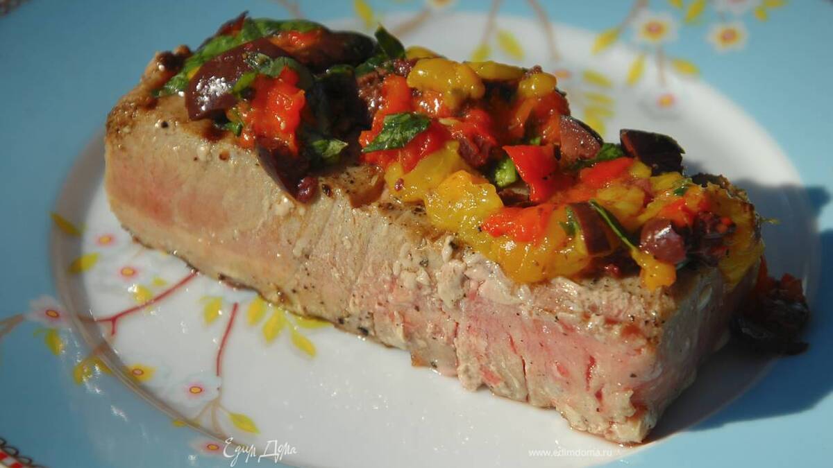 Тунец под соусом из оливок и сладкого перца