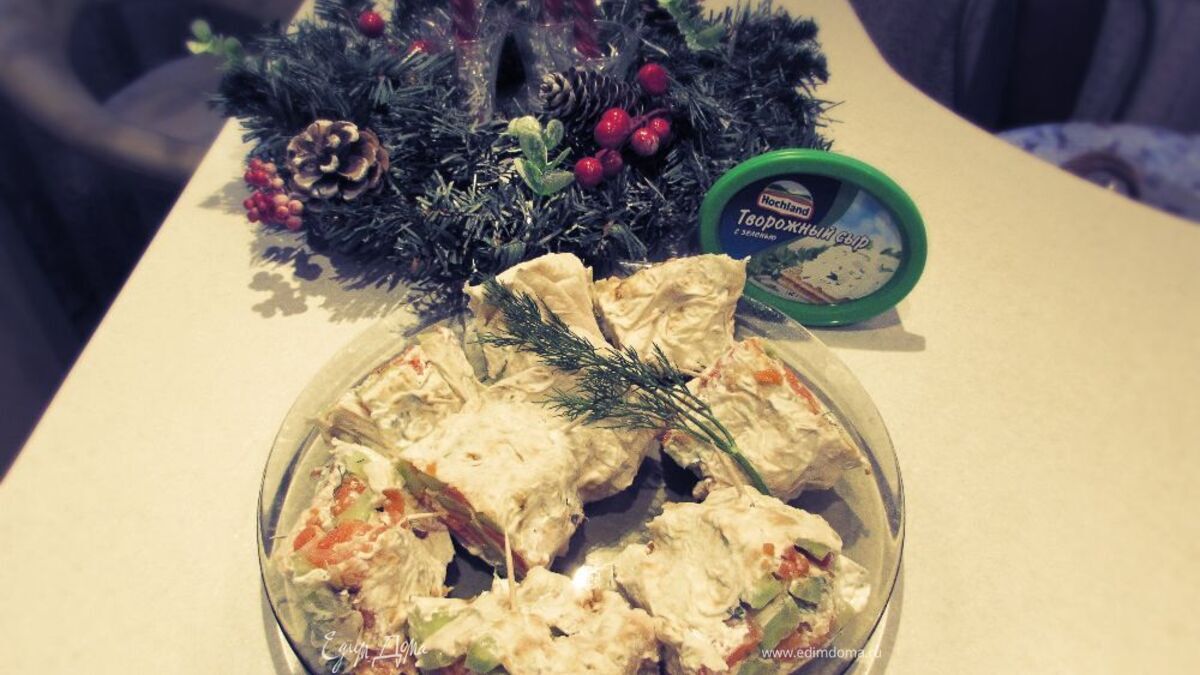 Если к вам неожиданно пришли друзья и вам нужно что-то быстро приготовить, сделайте рулет в лаваше с нежным творожным сыром Hochland. Ваши друзья останутся довольны!