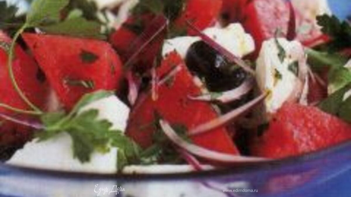 - Шаг 1Перчик чили мелко нарезать, перемешать в миске с рубленым чесноком, оливковым маслом и половиной сока лайма. Добавить соль и свежемолотый черный перец, перемешать. Выложить в оливковое масло кусочки феты и аккуратно перемешать, нарыть и оставить на 30 мин. Арбуз нарезать крупными кубиками, выложить в салатник, добавьте фету, оливки, полейте оливковым маринадом, сбрызните соком лайма и посыпьте цедрой лайма.