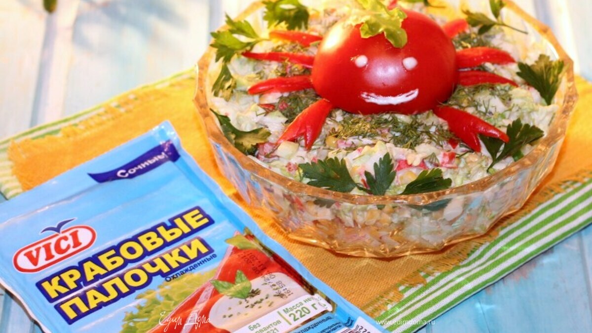 Можно изобразить крабика из половинки помидора и красного перчика. - Шаг 8