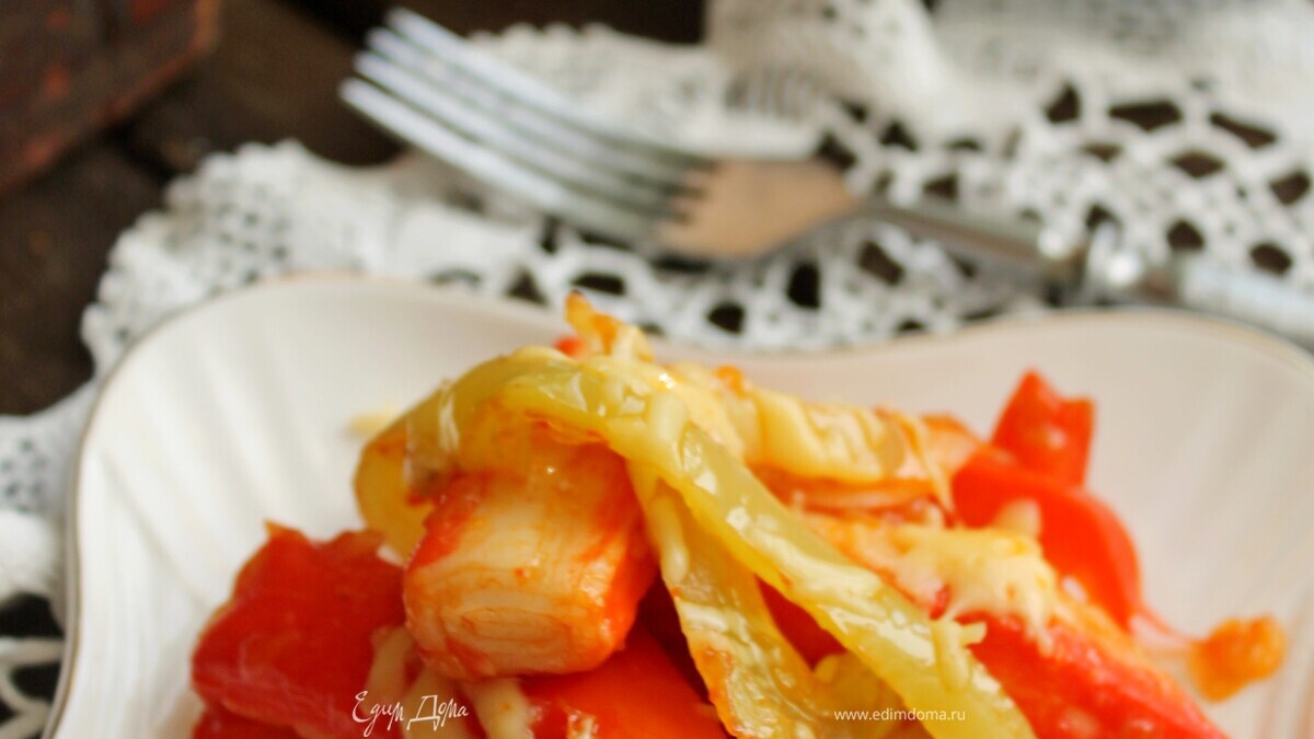 Добавить крабовые палочки Vici и потомить до готовности перца. - Шаг 8