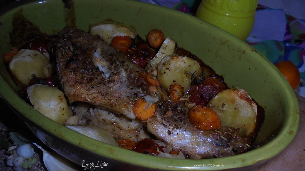 Отличная рыбка с цитрусово-пряным ароматом с запеченными овощами.Очень вкусное и полезное блюдо.