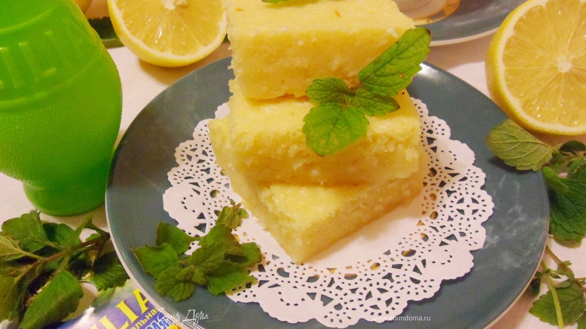 Очень вкусное двухслойное мягкое пирожное с ярким вкусом лимона и мяты. Во время выпечки пирожное само разделится на два слоя. Нижний — лимонный упругий крем, а верхний — хрустящая кокосовая корочка. Пирожное очень простое в приготовлении, но результат просто удивительный!