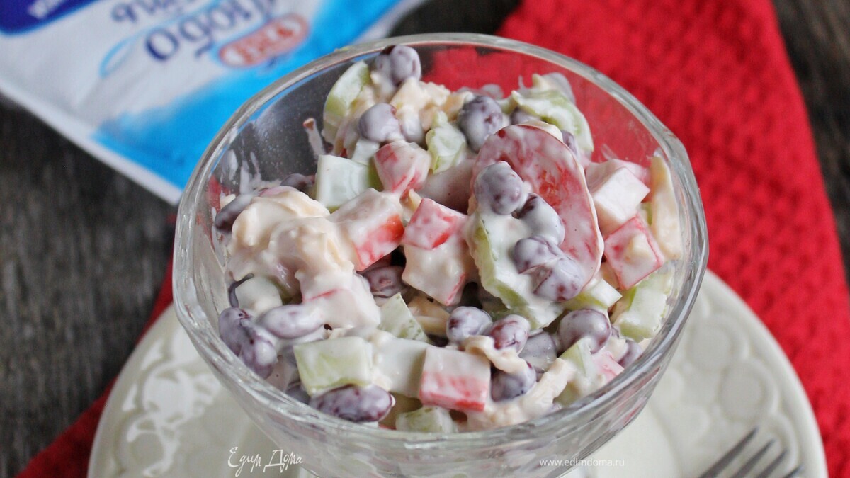 Салат с крабовыми палочками и фасолью