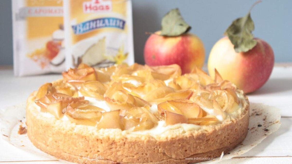 Необычный, но очень нежный пирог, сочетающий в себе ванильно-творожную начинку и спелые яблоки. Очень нарядно смотрится на столе, да и есть — его одно удовольствие (особенно вкусен он, если постоит немного в холодильнике).
