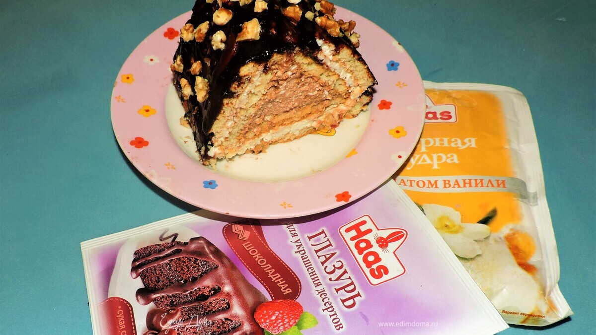 Разводим глазурь ТМ HAAS согласно инструкции и поливаем тортик, оставляем в холодильнике до застывания глазури. Приятного аппетита!