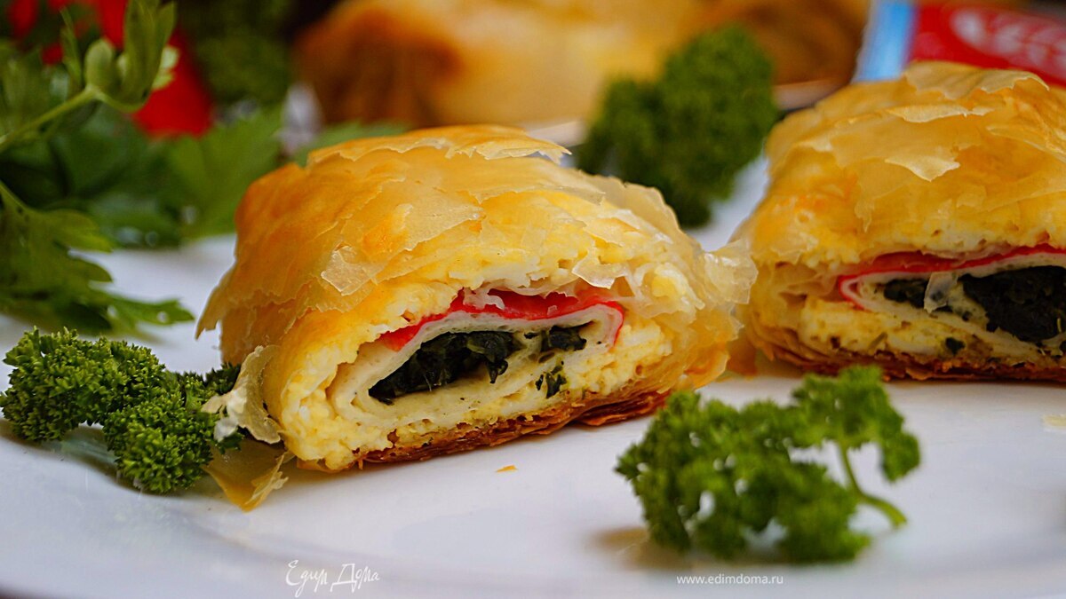 Рулетики из теста фило с крабово-сырной начинкой