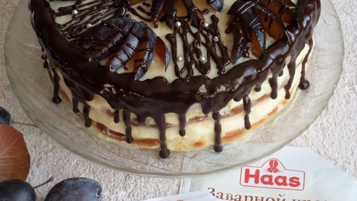 Аналогично поступаем с оставшимися коржами, кремом и сливами. Убираем торт в холод. - Шаг 20