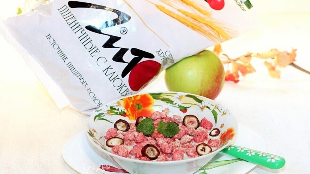 Добавляем очищенный и дробленый орешек и пшеничные отруби с клюквой ТМ «Лито». Получился очень вкусный хрустящий ароматный завтрак. Приятного аппетита!