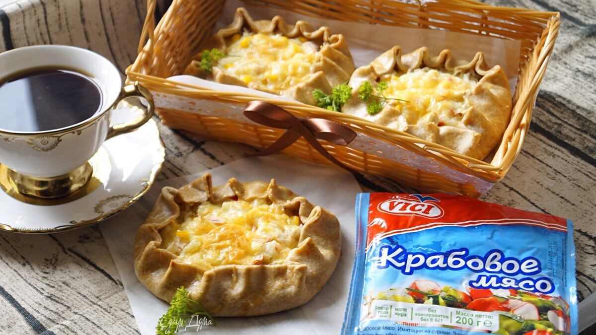 Вариантов галет великое множество. Я предлагаю вам попробовать с крабовыми палочками, рисом и кукурузой под яично-сырной заливкой.