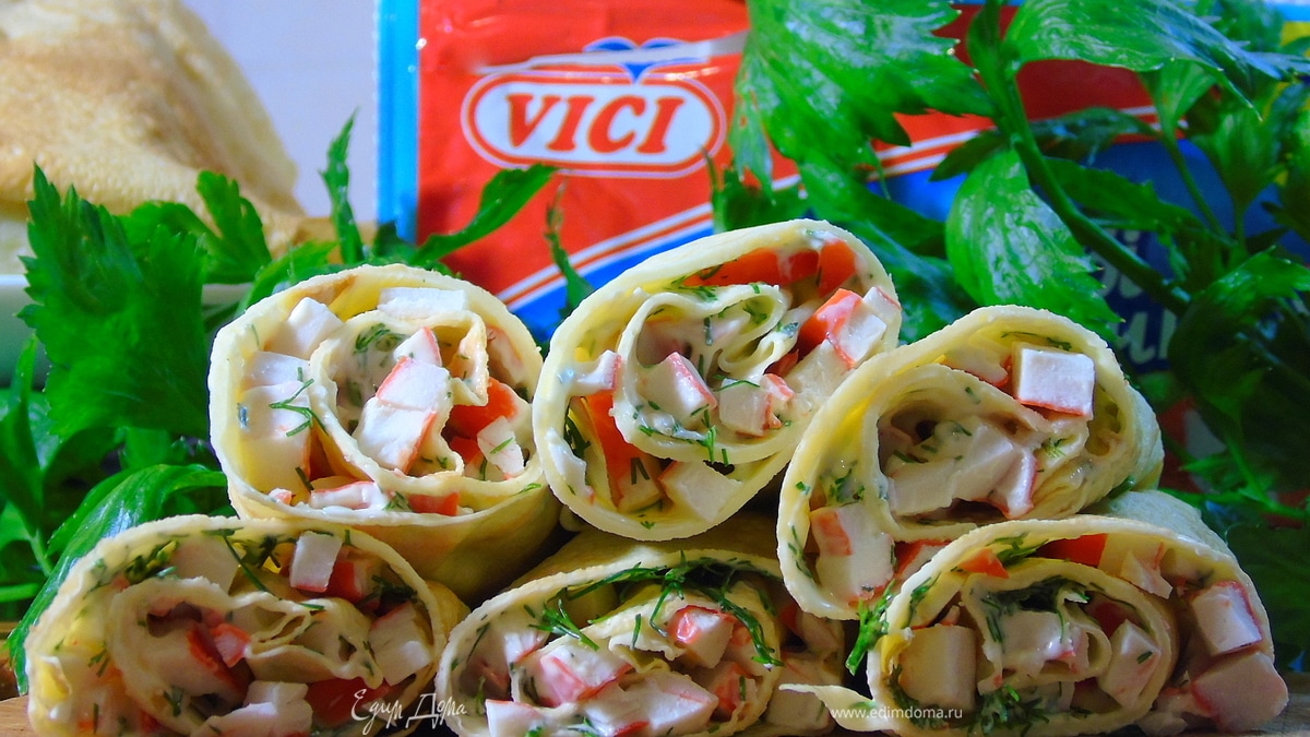Вкусная закуска за 20 минут... Яичные блины, смазанные остреньким майонезом и начиненные сочными крабовыми палочками ТМ VICI.