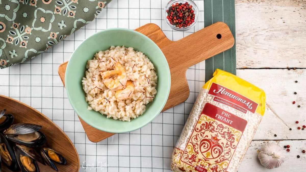 Готовое ризотто подавайте порционно с креветками и мидиями. Приятного аппетита!