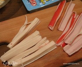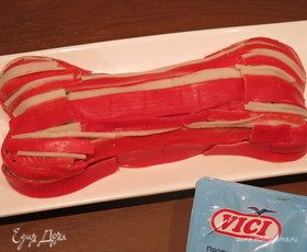 Накрываем косточку полосками крабовых палочек.
