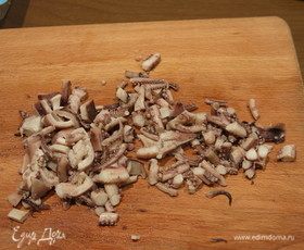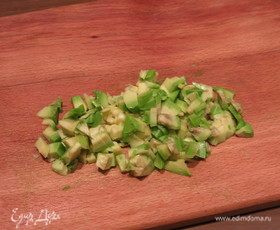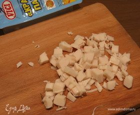 Измельчаем кальмары.