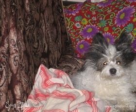 Охраняет мои тапочки... Малого уже давно нет, остались только фото и память.